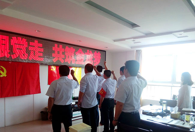 在這次黨員民主生活會(huì)上,黨委書記饒金才同志首先宣讀了鎮(zhèn)委接受5名同志為中共預(yù)備黨員的決議,并帶領(lǐng)全體黨員面對(duì)黨旗,舉起右手,緊握拳頭,重溫了入黨誓詞:“為共產(chǎn)主義奮斗終身,隨時(shí)準(zhǔn)備為黨和人民犧牲一切,永不叛黨”,嘹亮的聲音回響在整個(gè)大樓。