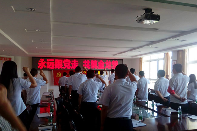 7月1日上午8:30,在中國(guó)共產(chǎn)黨成立94周年之際,湖北金龍集團(tuán)公司黨委組織新老黨員、入黨積極分子,在公司多功能會(huì)議室召開了黨員民主生活會(huì),熱烈慶祝黨的生日。